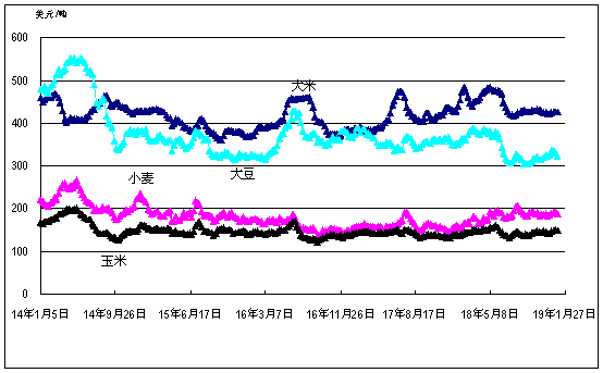国际大宗农产品周均价格走势图(2014年1月至今)