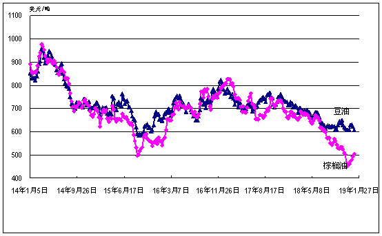 美国芝加哥商品交易所豆油、大豆、小麦和玉米最近期货合约收盘周均价每吨分别为648美元、337美元、192美元和149美元,环比分别涨3%、2%、2%和1%,同比分别低8%、低7%、高21%和高7%;马来西亚棕榈油荷兰鹿特丹港到岸周均价每吨532美元,环比涨1%,同比低21%;国际棉花指数(SM级)周平均每磅85.96美分(每吨1895美元),环比涨1%,同比低10%。