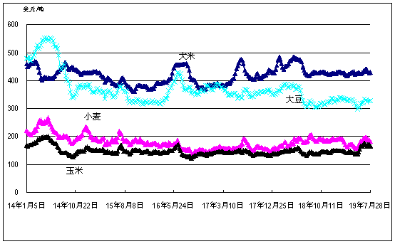 国际大宗农产品周均价格走势图(2014年1月至今)