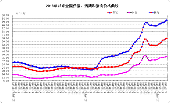 生猪价格。全国活猪平均价格37.51元/公斤,比前一周上涨0.6%,与去年同期相比(以下简称同比)上涨194.2%。29个监测省份活猪价格上涨,北京下降。华南地区活猪平均价格较高,为41.84元/公斤;西北地区较低,为33.12元/公斤。全国猪肉平均价格59.64元/公斤,比前一周上涨0.9%,同比上涨164.5%。29个监测省份猪肉价格上涨,甘肃下降。华南地区猪肉平均价格较高,为66.32元/公斤;西北地区较低,为52.58元/公斤。全国仔猪平均价格82.16元/公斤,比前一周上涨1.4%,同比上涨248.6%。河北、辽宁、江苏、湖南、贵州等26个省份仔猪价格上涨,上海、河南、甘肃、新疆4个省份下降。