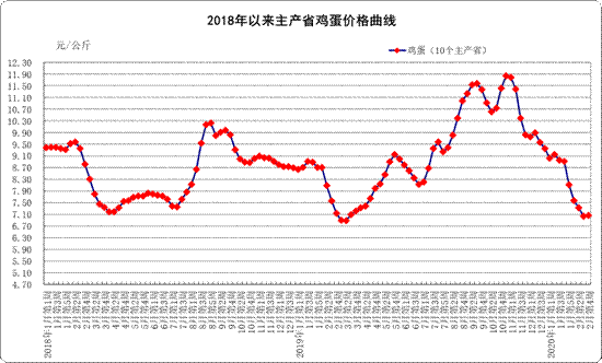 鸡蛋价格。河北、辽宁等10个主产省份鸡蛋平均价格7.07元/公斤,比前一周上涨0.4%,同比下降0.8%。全国活鸡平均价格20.00元/公斤,比前一周上涨3.4%,同比上涨2.4%;白条鸡平均价格22.97元/公斤,与前一周持平,同比上涨14.4%。商品代蛋雏鸡平均价格3.99元/只,比前一周上涨0.8%,同比上涨15.0%;商品代肉雏鸡平均价格3.81元/只,比前一周上涨16.9%,同比下降12.8%。