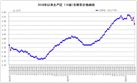 生鲜乳价格。内蒙古、河北等10个奶牛主产省(区)生鲜乳平均价格3.77元/公斤,比前一周下降1.8%,同比上涨4.4%。