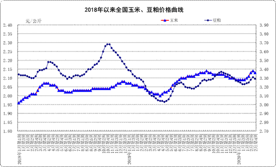 据对全国500个县集贸市场的定点监测,2月份第4周(采集日为2月26日)活猪、猪肉、牛羊肉、生鲜乳、玉米、豆粕价格下降,白条鸡价格持平,活鸡、鸡蛋、配合饲料价格上涨。