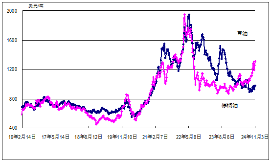 2.棕榈油、原糖和豆油价格环比小幅上涨