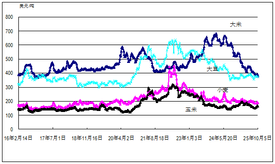 国际大宗农产品周均价格走势图(2016年2月至今)
