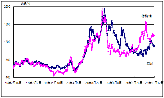 2. 玉米、棕榈油和食糖价格环比基本持平。美国芝加哥商品交易所玉米最近期货合约收盘周均价每吨165美元,环比基本持平,同比持平;马来西亚棕榈油荷兰鹿特丹港到岸周均价每吨1353美元,环比基本持平,同比高7%;国际糖料理事会原糖周均价每磅16.10美分(每吨355美元),环比基本持平,同比低24%。