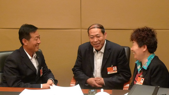 在路上,在会场,在房间,杨丰岐、陈分新和刘会莲有机会就相互交流,共同探讨。本报记者 王瑜 摄