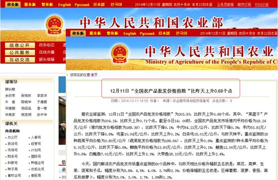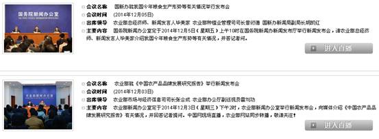 二是粮食等主要农产品生产信息公开情况。围绕落实新形势下国家粮食安全战略,召开了“切实抓好粮食生产 保障国家粮食安全”新闻发布会。组织中央主流媒体,对全国春季农业生产等重大会议和春耕生产两大攻坚战、秋粮抗灾夺丰收行动等重大活动进行跟踪报道。制定下发了《2014年冬小麦春季田间管理技术意见》等23个技术指导意见,并在农民日报和中国农业信息网全文刊登。编印粮食增产模式攻关专刊25期,在农民日报开设“增产模式攻关进行时”专栏,并6次专版宣传区域性、标准化高产高效技术模式及各地推进高产创建和粮食增产模式攻关的经验做法。在各大新闻媒体上公布今年小麦最低收购价和玉米临时收储价格。启动了东北和内蒙古大豆、新疆棉花目标价格补贴试点,并在中农网、农民日报、市场周刊等新闻媒体开展连续6期政策解读。加强农产品监测预警,发布了稻谷、小麦、玉米、大豆、棉花、糖料、油料等主要农产品监测月度分析报告10篇。通过全国农产品批发市场信息网、农民日报、央广新闻等媒体定期发布“农产品批发价格指数”和“菜篮子产品批发价格指数”。