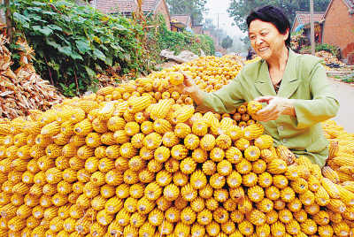 图为河南省汤阴县白营乡南店村的农民正在抓紧时间晾晒玉米,看着丰收的玉米喜上眉梢。该县三十八万亩玉米喜获丰收,亩产达五百五十公斤以上。张志勇摄