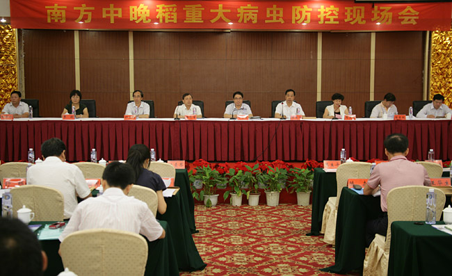 本网讯:8月17日,农业部在湖北仙桃召开南方中晚稻重大病虫防控现场会。会议要求各级农业部门突出重点、分区推进、分类指导、科学防控,全力以赴打好南方地区以水稻“两迁”害虫为重点的防控攻坚战,确保实现“两迁”害虫稻飞虱、稻纵卷叶螟不大面积暴发成灾,稻瘟病、纹枯病不大面积流行危害,单个病虫危害损失率控制在3%以下,总体危害损失率控制在5%以下,实现“虫口夺粮”。