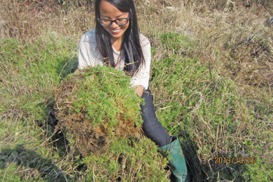 ▲2013年10月26日,刘玲在山坳里采野生水苔。