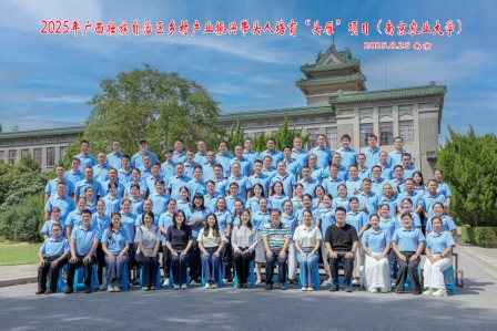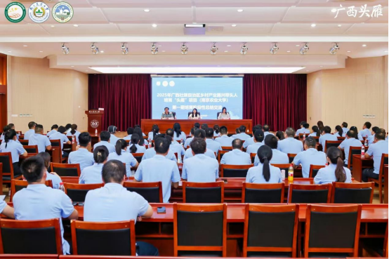 2025年8月25日下午,广西壮族自治区乡村产业振兴带头人培育“头雁”项目第一期培育阶段性总结交流会议在南京农业大学隆重举行。南京农业大学继续教育学院、乡村振兴学院副院长鲁韦韦,广西壮族自治区农业干部学校带班老师罗雪娇出席会议并致辞,会议由南京农业大学继续教育学院、乡村振兴学院非学历教育科科长徐风国主持。来自广西的105名“头雁”同学齐聚一堂,共同回顾培育历程,分享学习收获,展望乡村振兴新征程。
