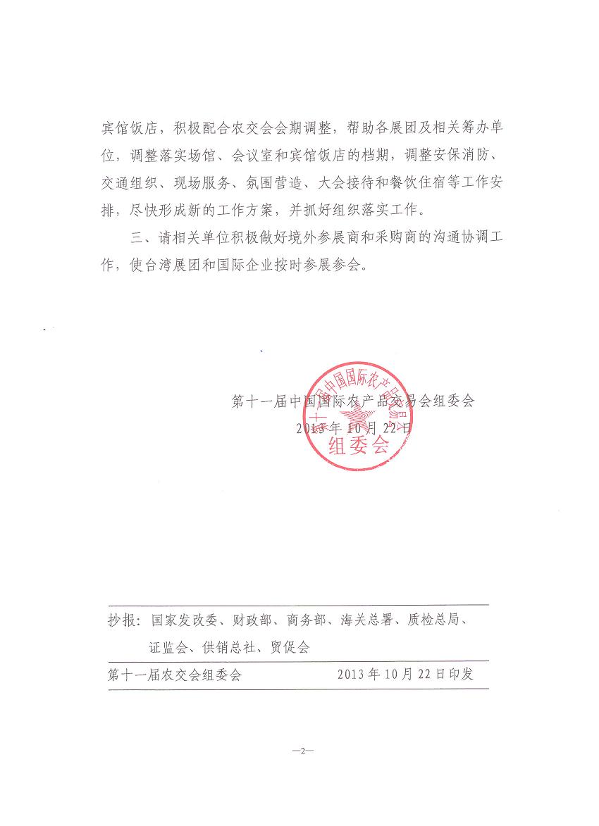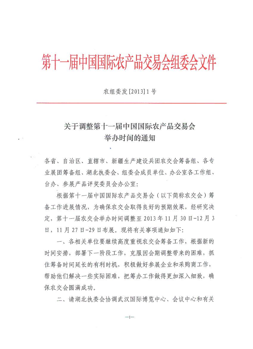 关于调整第十一届中国国际农产品交易会举办时间的通知
