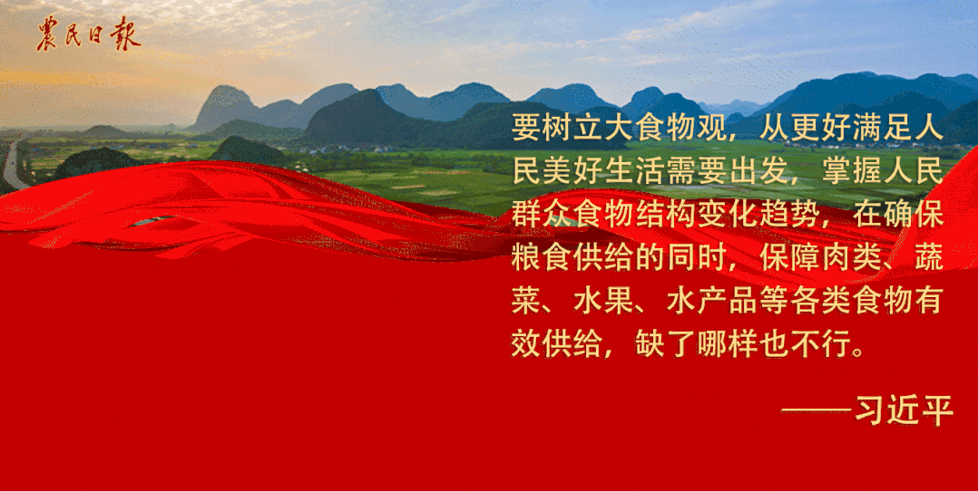 从粮食安全是“国之大者”,到树立“大食物观”,总书记正是着眼于人民对美好生活的向往以及食物结构变化的新趋势,立足于提高农业综合生产能力,对稳粮保供工作作出的新部署。这要求我们转变观念,树立大农业观、大食物观,构建食物安全保障体系,在守好“米袋子”的同时,拎稳“菜篮子”,端稳“肉盘子”“油瓶子”。