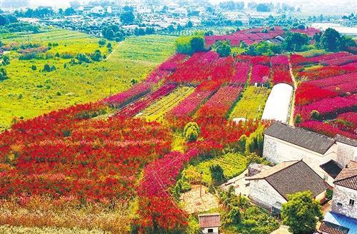 四川省广安市前锋区观塘镇八里村色彩斑斓的紫薇花田把周边的民居映衬得格外美丽。近年来,八里村坚持发展绿色生态农业,引进业主相继建起无污染蔬菜大棚、精品蔬菜基地和名贵花木培植基地,既壮大了村集体经济,增加了村民土地出租和务工收入,又美化了生产生活环境,扮靓了乡村。
