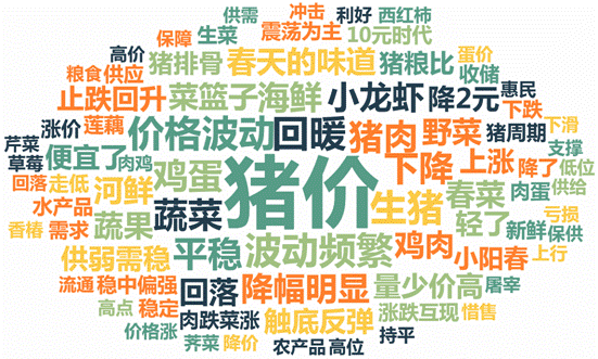 1. 猪牛羊肉价格上涨,鸡蛋价格略有下降。猪肉批发市场周均价每公斤20.98元,环比涨0.7%,同比高13.9%;牛肉每公斤77.15元,环比涨0.1%,同比低0.4%;羊肉每公斤69.10元,环比涨0.8%,同比低3.3%;白条鸡每公斤18.33元,环比涨0.2%,同比高7.1%。鸡蛋批发市场周均价每公斤10.19元,环比跌0.2%,同比高18.8%。
