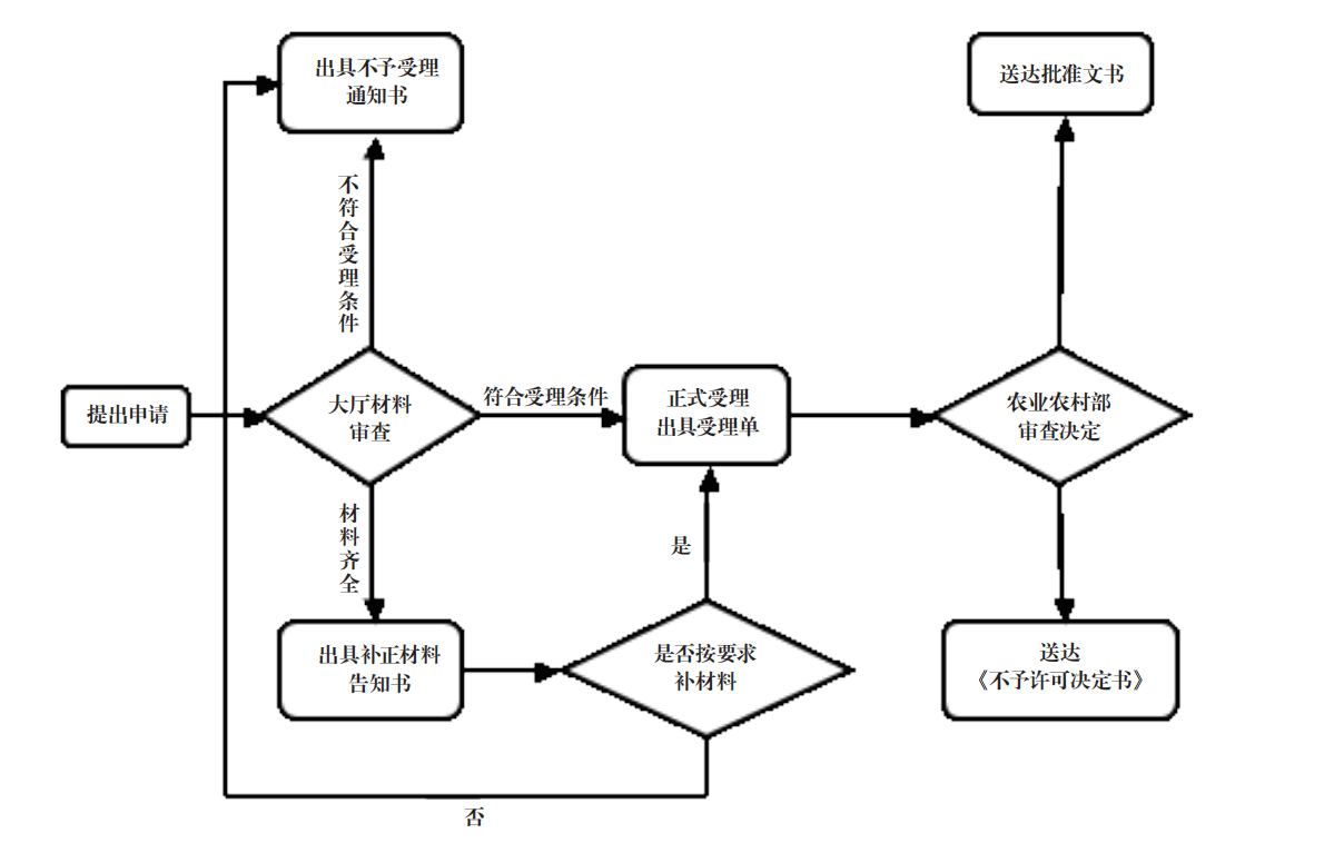 18.3收到不予受理通知书、办结通知书(不予许可)之日起,申请人可以在60日内向农业农村部申请行政复议,或者在六个月内向北京市第三中级人民法院提起行政诉讼。