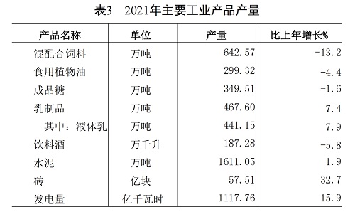 主要工业产品产量见表3。