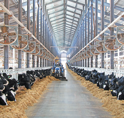 内蒙古自治区呼伦贝尔市,一家养殖企业的饲养员在智能化奶牛示范牧场作业。