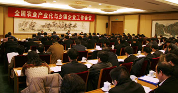 农业部副部长范小建在会议上指出,到2010年末,农业部通过实施“农业产业化和农产品加工推进行动”,使龙头企业集群有一个大发展,培育一批年销售收入超过100亿元和超过50亿元的龙头企业,培育一批成长性好的农产品加工示范企业和国际竞争力强的出口企业,整体上提高农业竞争力;使农产品加工水平有明显提高,主要农产品加工转化率(初加工以上)达40%一50%,精深加工比重明显增加;使基地建设布局进一步优化,根据优势企业、优势产业以及农产品出口需要,建设一大批高标准农产品生产和加工基地,广泛带动农户实行标准化生产,提高农产品质量安全水平;使农产品品牌建设有新的突破,培育一大批优质、高效、安全、生态名牌产品,培育中国名牌和中国驰名商标100个以上;使产业化经营带动能力有显著提升,扶持发展一批农民专业合作经济组织和中介服务组织,力争使更多农户进入农业产业化经营领域,有力促进农民增收。