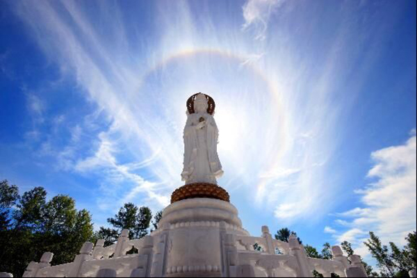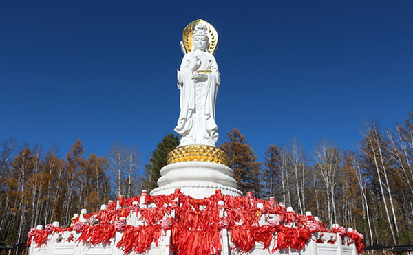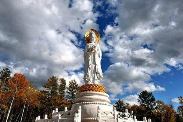 观音山上坐落着与南海观音交相辉映的林海观音,是观音化身和观音法门的综合体现。此观音圣像是正观音的一体化三尊造型,从每尊的正面看均是一尊观音圣像,环绕一周方可看清三尊手势各异的观音圣像全貌。