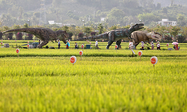 三亚水稻国家公园位于海棠湾国家海岸南部入口,一期占地面积2800亩。园区拥有国家杂交水稻、三亚南繁综合试验基地,种植近500种水稻品种;拥有全球大型1:1原型复原中国恐龙科普教育基地,恐龙种类277种323只,配备科普牌,夜间配备灯光演绎;基地集南繁科普、恐龙科普、中国农耕文化、亲子乐园、白鹭湿地保护区、稻作文化、花卉、热带蔬果观光采摘体验区、稻田盛宴特色餐饮为一体,是海南最大的农旅融合国家4A级旅游景区。水稻国家公园面积宽广、户外田园景观优美,具备乡村振兴,崇尚自然,回归原生态,田园景观化,景观科普化等主题。