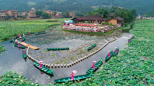 大田湿地人家位于沧沟乡大田村,由古村落度假区、桃花林景观区、莲花湖观光区、自行车道骑行区、步游道休闲区、湖港荡舟区、木棕河漂流区等七大景区组成。游客在景区内可体验观湖中荷花绽放、赏湖岸百花争艳,任湖内柳州穿行,看藻丛游鱼戏逐,享古寨原生态生活、玩水上游乐竞技的乐趣。
