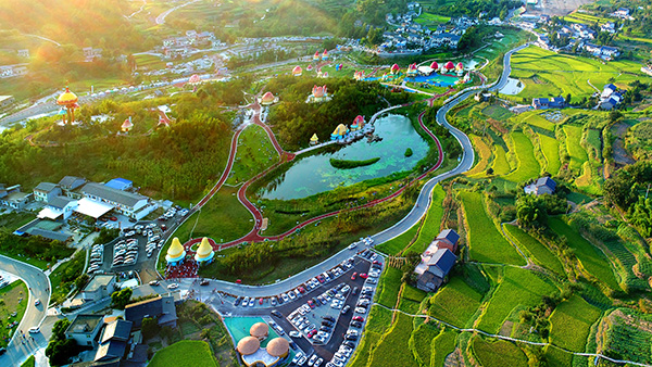 绿水村是重庆三环高速公路和大黑山景区旅游通道重要节点,区位优势明显。村内层层叠叠、错落有致、恣意舒缓、大小不一的平坝梯田风光,构成了一幅美丽的乡村旅游精美画卷。绿水村以食用菌产业为主导产业,实行旅游差异化发展,打造了集观光、采摘、科普为一体的全国首家以食用菌为主题的“蘑菇总动员”景区,是西南地区最大的食用菌产业基地、重庆市中小学生食用菌研学基地、重庆市食用菌科技示范园,实现年产食用菌6万吨、年产值6亿元,解决富余劳动力就业600余人。