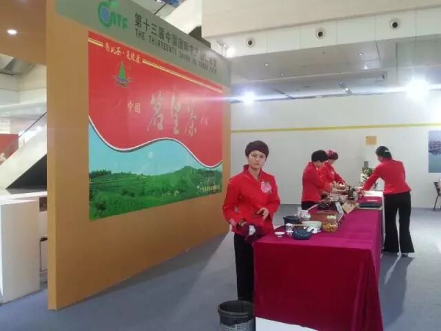 穿着典雅红色礼服的茶艺师向世界展示广东茗茶的韵味和魅力