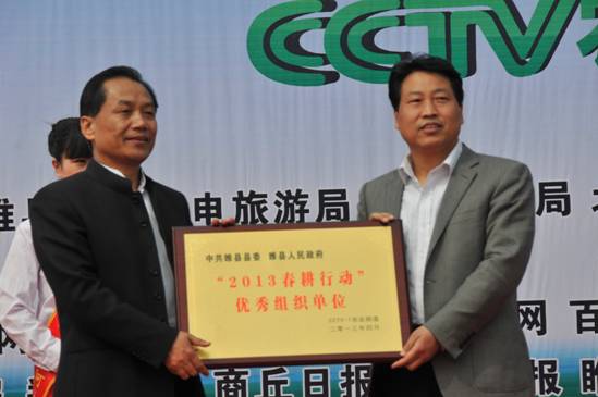 由CCTV-7农业频道主办的“粮安天下,春耕有我—2013春耕行动”继续火热开展,收官站走进全国粮食生产先进县、中原水城——河南睢县。活动于4月1日上午在睢县铁人广场隆重开幕。