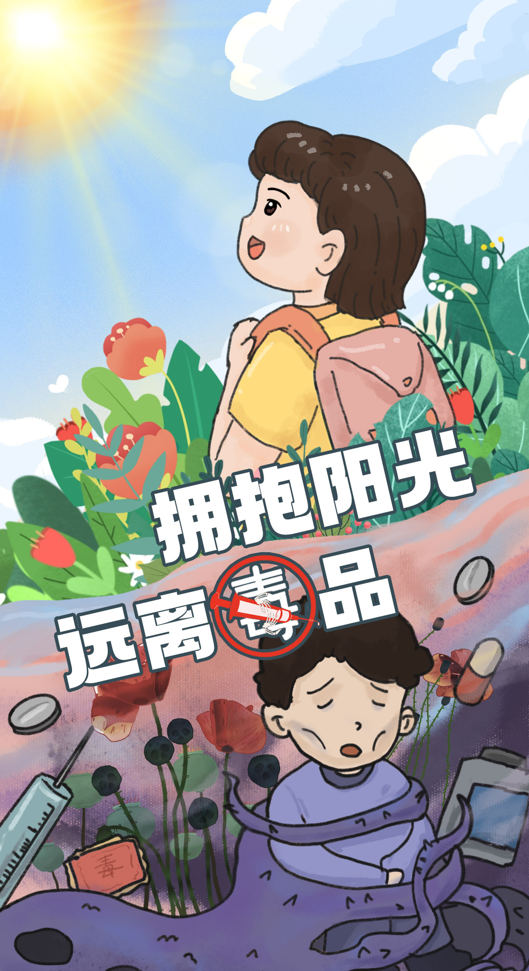 《电子插画系列--“拥抱阳光 远离毒品”防范青少年药物滥用》