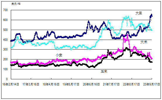 国际大宗农产品周均价格走势图(2016年2月至今)