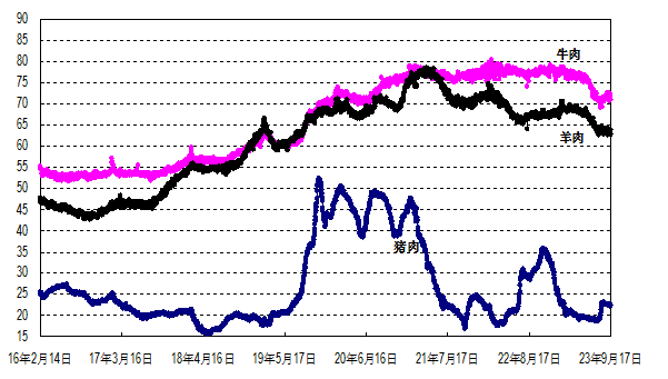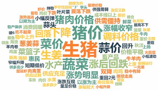 1. 猪肉价格略有下跌,鸡蛋价格继续上涨。猪肉批发市场周均价每公斤22.35元,环比跌0.8%,同比低27.4%;牛肉每公斤71.80元,环比涨0.3%,同比低7.2%;羊肉每公斤63.56元,环比跌0.2%,同比低5.6%;白条鸡每公斤18.12元,环比跌0.2%,同比低5.3%。鸡蛋批发市场周均价每公斤11.66元,环比涨1.2%,同比高0.6%。