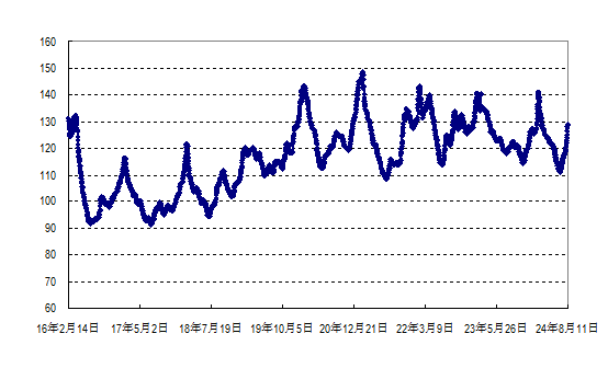 据农业农村部监测,2024年第32周(2024年8月5—11日,下同)“农产品批发价格200指数”为125.10(以2015年为100),比前一周升4.88个点,同比高5.18个点;“‘菜篮子’产品批发价格200指数”为126.93(以2015年为100),比前一周升5.73个点,同比高6.79个点。