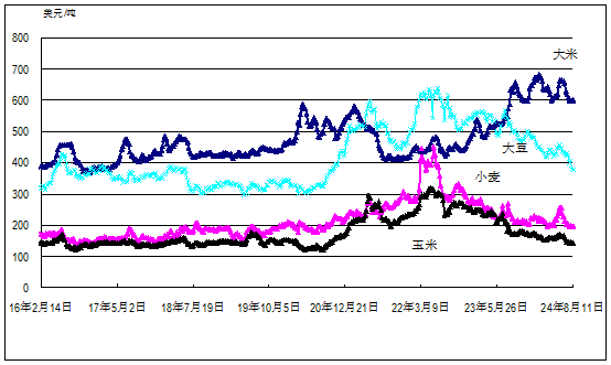 国际大宗农产品周均价格走势图(2016年2月至今)