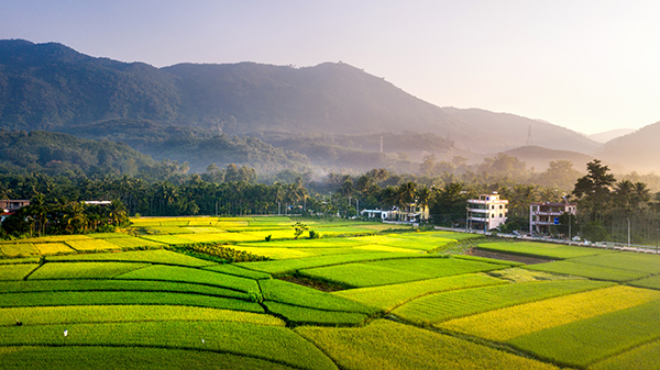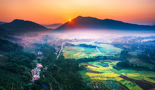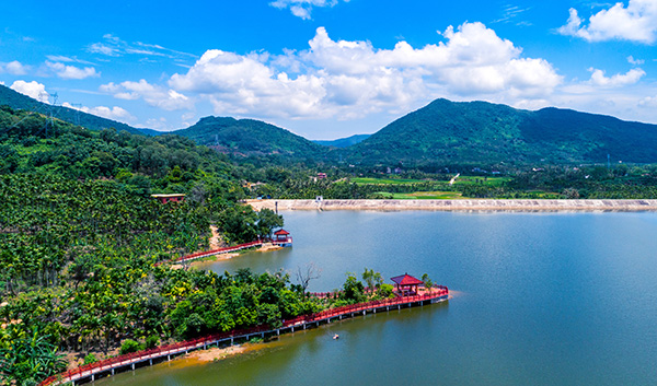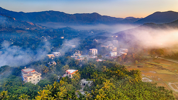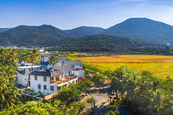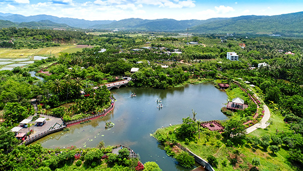罗蓬村田园风光秀丽,拥有2391亩肥沃农田,境内水系资源充沛,形成了“一衣携两湖”的独特水系景观。该村以“运动休闲”为发展核心,借助秋季旅游黄金期,整合多元业态,精心打造精品旅游线路,不断提升三亚“后花园”的品牌影响力。通过“合作社+农户+政府”的帮扶模式,高效运营合作社,并以产、供、销一体化的模式建设黑山羊养殖示范基地,夯实助农增收的基础;同时,积极开发野外露营、果蔬采摘、乡道骑行等休闲项目,以趣野营咖特色业态为亮点,打造沉浸式度假空间,构建“自然游览+特色体验+休闲消费”的完整产业链,有力推动乡村旅游品质提升与农民持续增收。秋季来此,游客可尽赏乡村秋色、品味特色美食、选购乡土特产。游客可沿草蓬水库休闲栈道漫步,近距离欣赏湖面波光粼粼的景致与周边青山绿树相映的生态风光,探访营地周边的瀑布溪流、原始雨林,感受自然野趣。村内集市聚焦农特产品消费,游客可在此选购黑山羊、小脚鸡等本地特色农产品,观赏黎族手工艺品,享受大自然里的沉浸式美学度假生活,在休闲互动中留存乡村记忆。