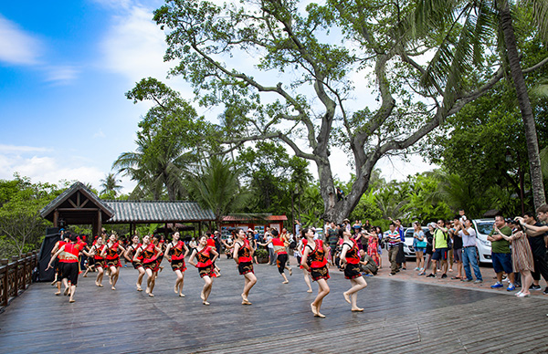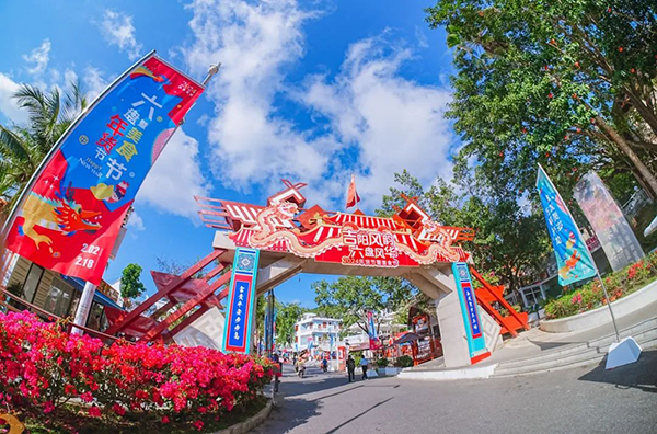 六盘村地理位置优越,凭借美食、美景及各类活动的吸引力,着力打造特色美食和文创娱乐两大精品板块,构建集吃、住、娱于一体的综合性旅游目的地。深入挖掘传统黎族文化与现代元素,定期举办传统舞蹈展演、手工艺体验、黎锦纺染、织绣技艺、苗绣、黎族制陶等非遗文化展示活动,展现传统工艺品与现代文创产品的独特魅力。此外,六盘村精心打造六盘风情街、美食广场、六盘记忆博物馆、黎族民俗展示区等,涵盖黎族织锦、特色餐饮、文创等产业,并设有情侣DIY区、鲜花区、清吧外摆区等主题功能区,丰富游客体验。同时,积极发展夜间经济,结合夜间灯光景观,形成了以音乐酒吧、特色小吃、屋顶餐厅、海鲜广场等为特色的夜间经济消费集聚点。为满足不同游客市民的美食需求,提供盐焗鸡、黑豆饭、烧鸭、椰子鸡、斑斓凉虾,还有新疆烤肉串烤馕、北京糖葫芦、台湾美食、土耳其冰淇淋等。