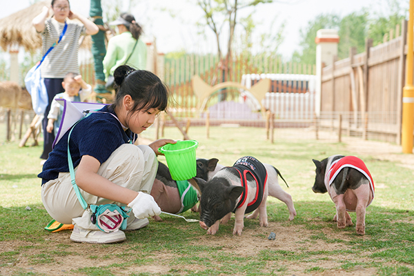 牛角村欢乐田园度假区核心区占地面积2800余亩,荣获国家森林乡村、江苏省特色田园乡村、江苏省乡村旅游重点村等多项殊荣。园区以牛与农耕文化为特色,规划“一湖两核六版块”布局,集吃住行游购娱全业态于一体,致力于打造高品质、多功能、生态优美、文化浓郁的长三角乡村旅游目的地。园区涵盖滨水度假、研学游乐、亲子农场、田园花海、湖畔休闲、农田景观等多功能区域,设有SU·牛角村度假酒店、阡书屋(稻田书屋)、季高·牛角村MOMO乐园、牛村农夫市集等特色项目。牛角村度假酒店由16栋临湖别墅组成,包含81间客房、64个庭院、34个屋顶露台、10个共享客厅,有田园雅致、轻奢极简、原始洞穴三大风格。度假区内设置草坪区域,满足露营团建需求,举办“趣”牛角风筝烧烤露营季。举办毛孩运动会,推出“山楂树下我和你”“一粒稻谷的旅程”等系列研学活动。