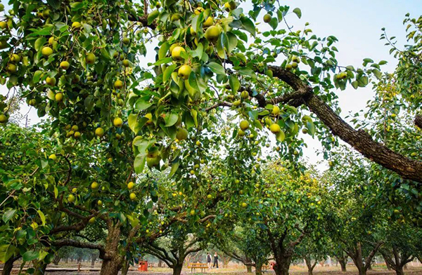梨园湾生态旅游区规划面积达1800余亩,荣获中国美丽乡村、全国休闲农业与乡村旅游五星级示范点、江苏省特色景观旅游名村、江苏最美乡村、江苏水美乡村、江苏省四星级乡村旅游点等多项荣誉称号。园区以生态梨园为环境基底,依托农林牧渔产业基础,突出梨文化这一核心文化特色,围绕“一核、两环、三心、五大片区”的空间布局,重点打造花洲生态体验区、梨韵文化科普区、梨园观光体验区、滨河风情休憩区和亲子农耕拓展区。规划建设西入口主游客服务中心、梨花洲、梨文化博览园、梨海风情园、亲子农耕体验园、梨园民宿等项目,致力于打造集观光、休闲、度假、体验、产业等多功能于一体的乡村旅游区。围绕“六塘香梨雪海,苏北城市田园”的主题,以梨文化为点,以梨为代表的种植产业为线,以植物多样化、原生态型、游乐休闲为面,打造“点线面”为一体的休闲农业和乡村旅游点。景区根据“梨”的特色,开发出了酥梨原汁、梨王头道醋、酥梨养生醋、梨木茶具和梨木厨具等10余种产品,获得了广大游客的一致好评。