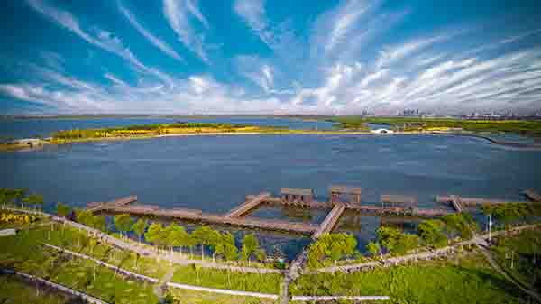 东湖风景区坐落于东丽湖西南部,占地面积达860亩。以其大尺度、广视野的四季大地花卉艺术景观和立体园林设计为显著特色,构建了一个集水面、陆地、岛屿等多种艺术景观于一体的自然生态亲水公园。湖畔精心种植了10万平方米的荷花,已成为津城赏荷的新地标。风景区内设有马拉松赛道、足球场等11处运动功能区,并提供桨板、皮划艇等丰富的亲水娱乐项目。此外,景区融合非物质文化遗产,打造了独具特色的大郑剪纸体验中心。湖畔营地配备轻奢帐篷酒店、咖啡厅及烧烤区,常年举办浪漫的烛光音乐会等活动,吸引骠骑营等俱乐部长期入驻。爱漫湖畔街区,以游客驿站服务为主,集艺术摄影、婚庆活动、企业团建、亲子活动等多功能于一体的综合休闲服务中心。树懒black餐厅是天津市首家“湖边露营”烤肉店,已成为网红打卡地。沉浸式湖岸大戏《今夕东丽湖》通过光影艺术,生动演绎了李叔同的传奇生平。