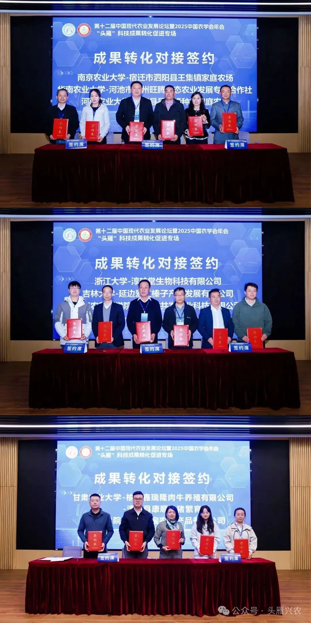 对接活动中,南京农业大学、华南农业大学、河南农业大学、浙江大学、吉林大学、浙江农艺师学院、甘肃农业大学、天津农学院等高校专家代表与“头雁”学员分三轮完成签约,标志着一批农业科技项目正式走向应用一线。专场活动同步设置百项“头雁”好物展和百项科技成果展,安排进企实地考察、专题研讨交流和“头雁”企业宣讲等环节,帮助与会代表在热烈交流中寻找合作契机,在充分展示中激发创新思路,助力跑出科技成果转化落地的“头雁”加速度。