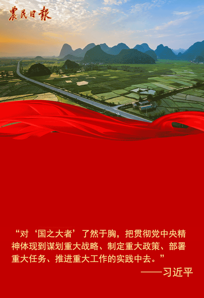 对“国之大者”做到心中有数,就要时刻关注党中央在关心什么、强调什么、要求什么,就要深刻把握中央的精神、理解中央的思路、紧跟中央的步伐。党的十八大以来,习近平总书记多次对“三农”工作作出重要指示,发表科学论断,“中国要强,农业必须强;中国要美,农村必须美;中国要富,农民必须富”“中国人的饭碗任何时候都要牢牢端在自己手上”“民族要复兴,乡村必振兴”……都是从全局和战略高度来把握、部署新时代“三农”工作。这也是在提示和告诫我们,各级党员领导干部是不是真的讲政治,是不是真的同党中央保持一致,就要看他们是不是真的胸怀“三农”这一“国之大者”。
