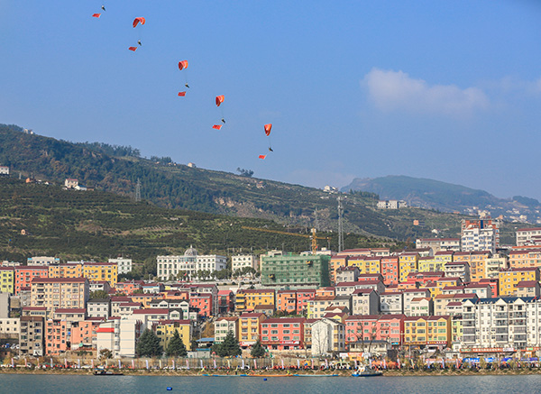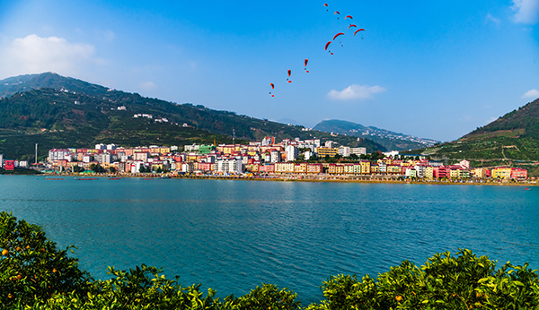 吒溪湖是长江一级支流,位于长江三峡西陵峡北岸的水田坝乡,独特的峡江气候造就了环湖的万亩橙园,是四季鲜橙的主产区。吒溪湖依托丰富的资源开发了含水陆空的三维立体运动项目,是湖北省农文旅体融合赋能乡村振兴的示范区。游客可以自驾小汽车、骑着自行车、划着龙舟、坐着皮划艇,还可以乘坐滑翔伞,观脐橙园风光,品尝优质脐橙。可谓“一江春水,两岸香橙,三栖运动,四季鲜果,果林飘香”。